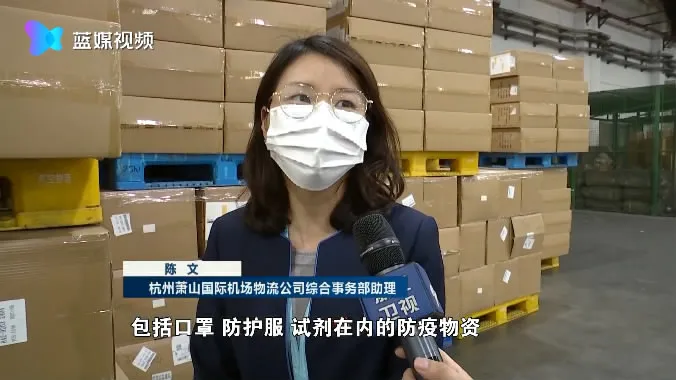 杭州萧山国际机场物流公司国际部经理王晗森:“从3月份国外疫情爆发到现在,我们组织了102吨防疫物资的运输,整个货运量比去年同期货运量增加了20%。”