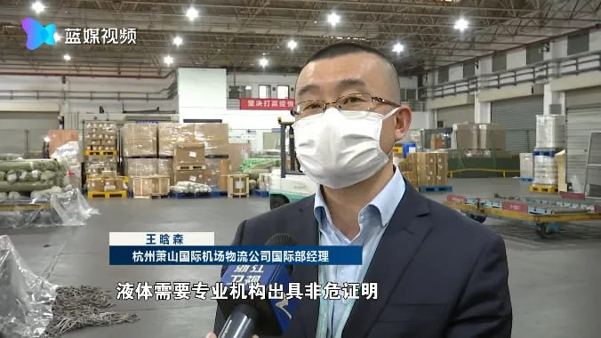杭州萧山国际机场物流公司国际部经理王晗森 :“像我们现在承运的这批试纸里,可能会有缓释液,液体需要专业机构出示非危证明,希望这些代理企业、生产厂家能够把专业机构的检测证明提前准备好。”