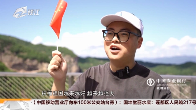 【国庆特写】神仙居景区如意桥挂起巨幅国旗...
