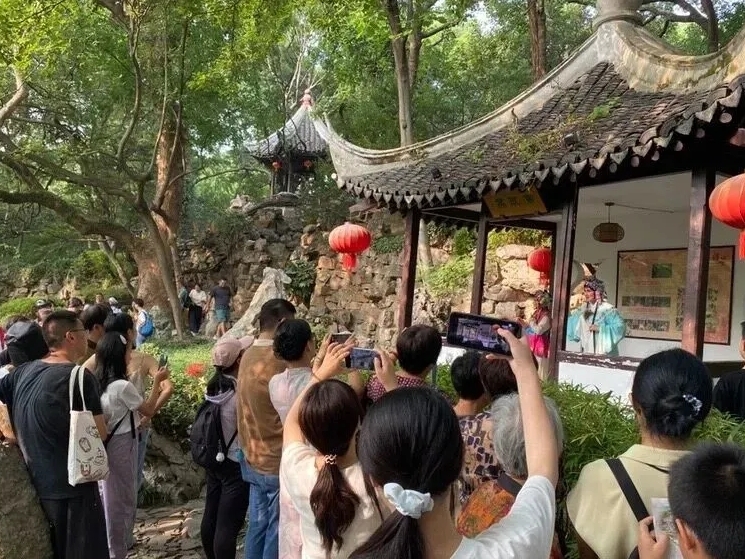 长假以来,绮园景区单日最高接待游客突破4000人次。同时,景区内推出非遗表演(海盐腔)、粮票兑换、复古凉茶摊、亲子糕点坊等一系列活动,让游客沉浸式体验海盐的历史和文化。