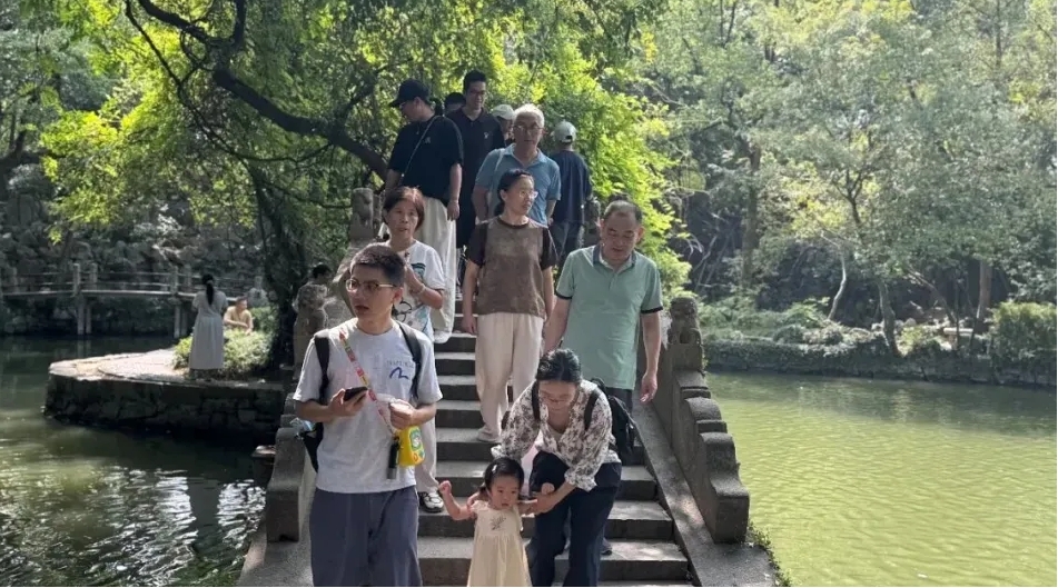 小巧精致的绮园,也被游客们挖掘出来,曲径通幽的石阶上,人流络绎不绝。人们在凉亭内歇脚,在奇石旁打卡,在百年古树下遥望,感受中国十大名园的魅力。身处闹市,却隐而不喧,这里的时光沉淀出了新滋味。