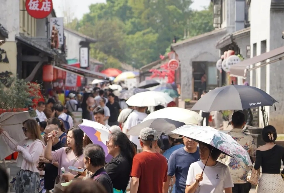北大街也趁势而上,邀请上海木偶剧团来表演国家级非遗项目,另外还有水上敦煌舞表演、中秋超级大月饼分享活动等,给市民和游客满满的惊喜和回忆。假期内,北大街日均客流量超6万人次,同比增长20%。