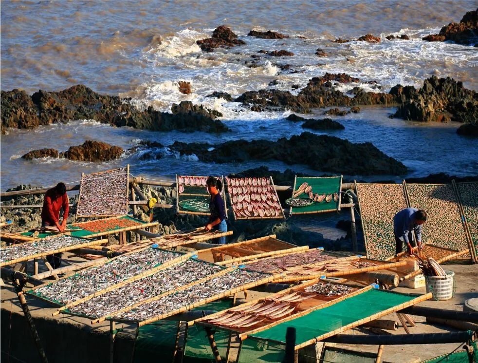 补着渔网,晒着鱼鲞